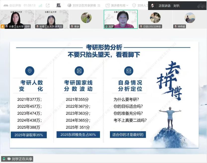 组织此次宣讲会表示热烈欢迎和衷心感谢。同时鼓励在线同学认真聆听、积极互动,充分利用宝贵机会做好考研准备。