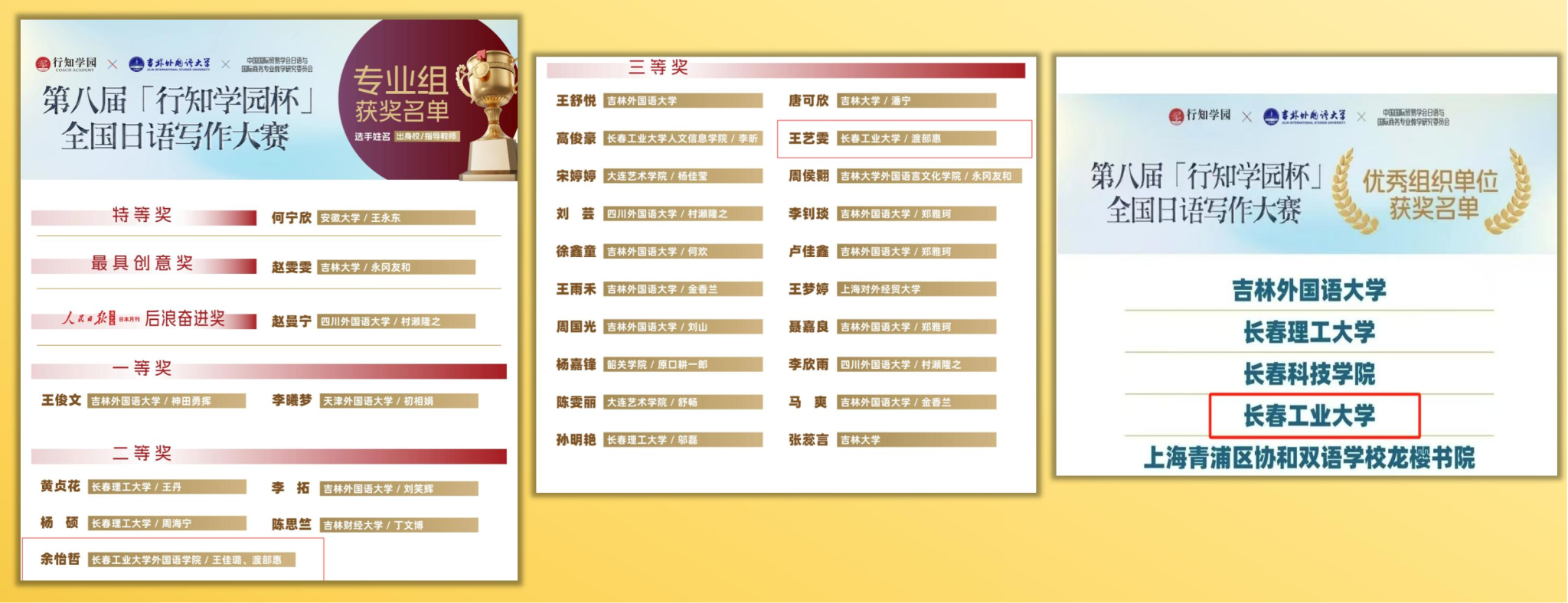 图1 第八届“行知学园杯”全国日语写作大赛成绩榜