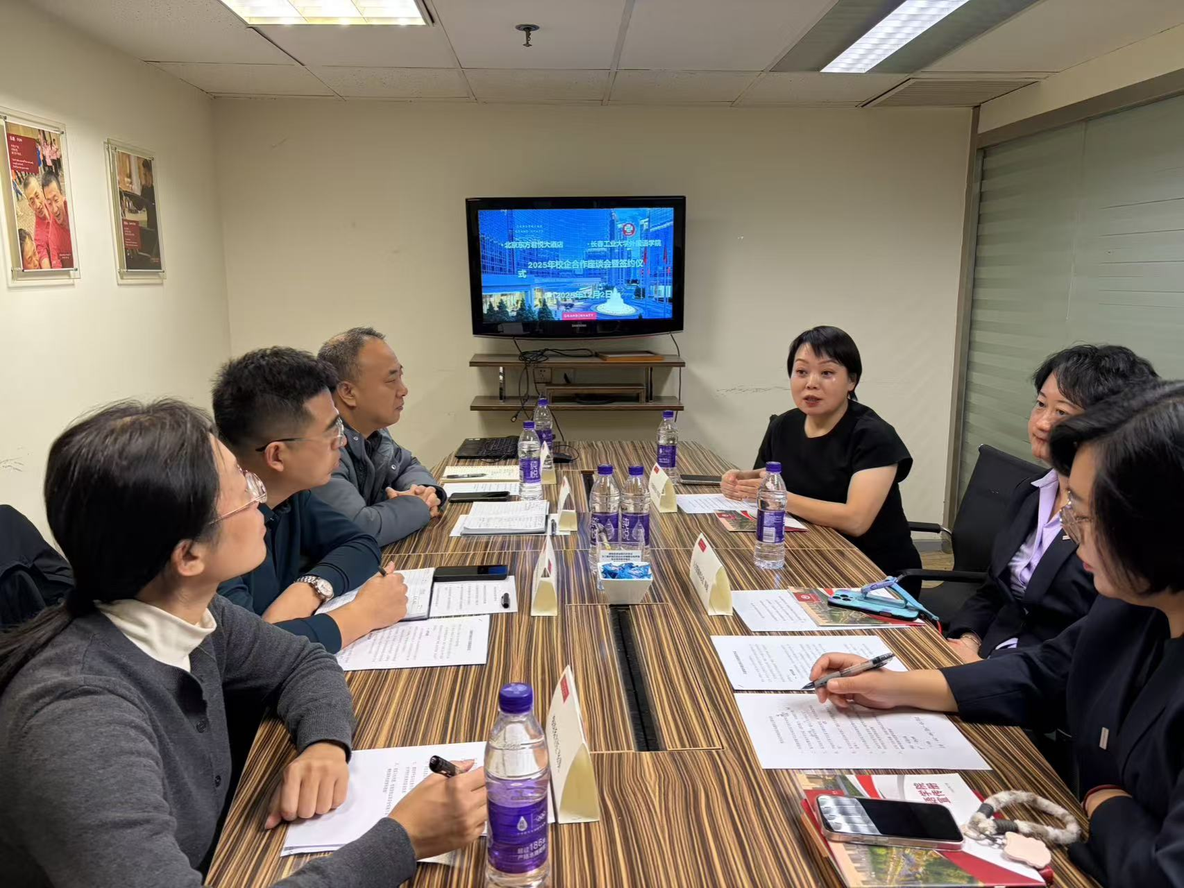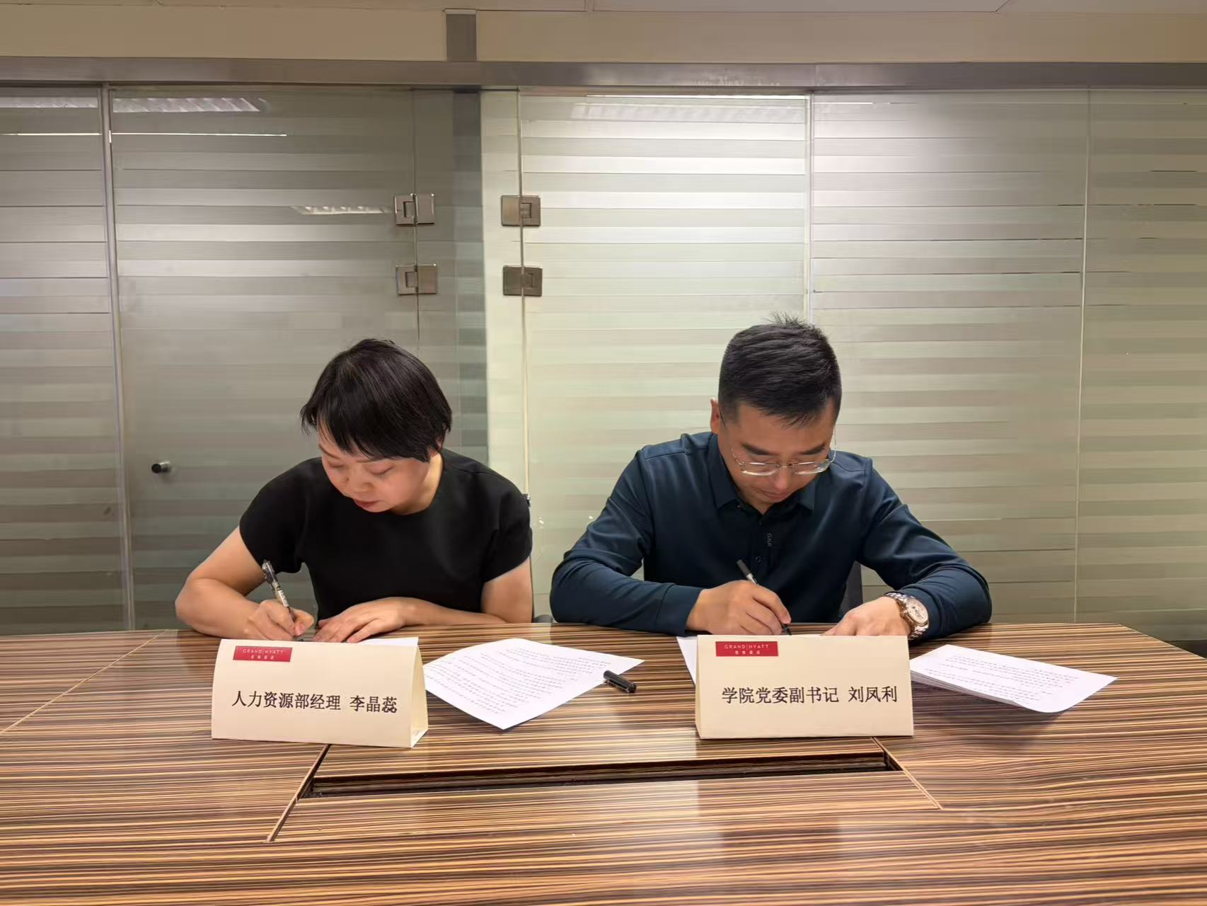 在五星级国际豪华酒店——北京东方君悦大酒店举行的校企合作洽谈会上,双方围绕共建大学生实习就业基地、精准对接酒店行业人才需求标准、定制化开发实习岗位体系及联合培养计划等核心议题展开了富有成效的深度磋商。酒店人力资源总监韩娟高度评价我院在服务管理、跨文化沟通等领域的复合型人才培养成效,认为毕业生展现出的专业素养与国际化视野与酒店“卓越服务”理念高度契合。会谈最终达成战略合作共识,双方正式签署《校企共建实习就业基地协议》,标志着“实践教学-岗位实习-就业输送”一体化人才培养通道的全面打通。