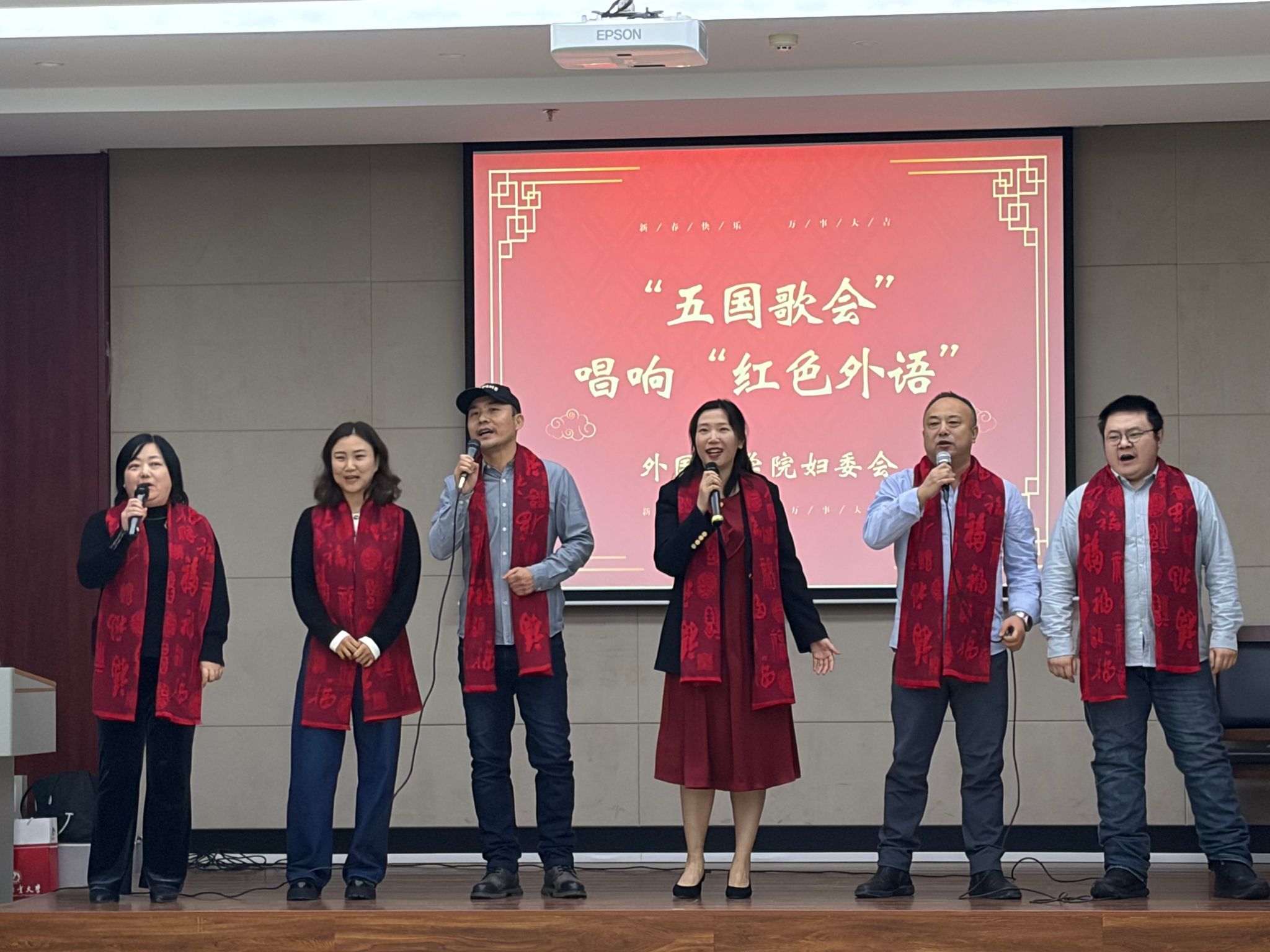 妇委会精心策划的“五国歌会”唱响“红色外语”主题活动顺利举行。学院教师积极参与,充分发挥自身语言专长,用中、英、日、俄、朝五种语言演绎经典红色曲目,在悠扬旋律与多元语言的碰撞中,抒发爱国情怀,凝聚奋进力量。
