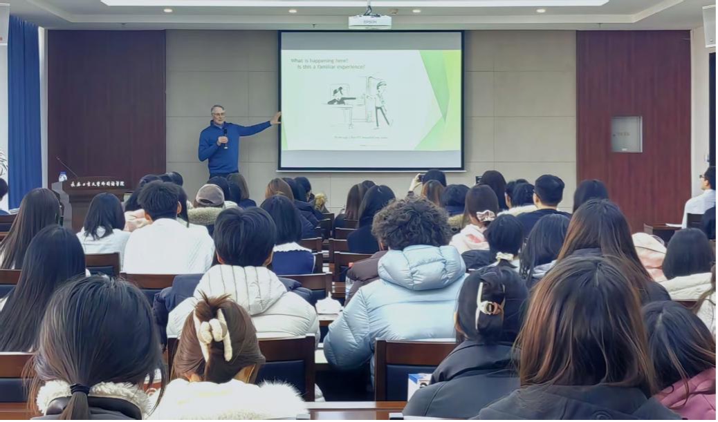 副院长曾妍、教师代表、英语专业全体本科生和研究生及国际教育学院的留学生参加了此次讲座,英语系教师仲伟磁主持本次报告。