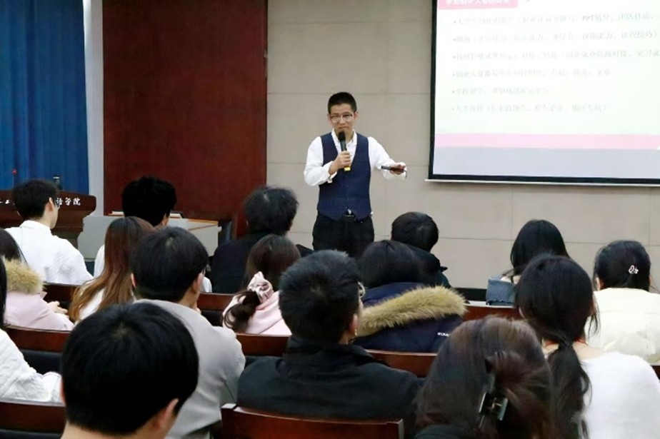 讲座现场,杨志刚老师紧扣“挑战杯”竞赛核心要求,结合自身丰富的实战案例与指导经历,围绕赛事备赛全流程进行系统性拆解与精细化辅导。他立足竞赛官方评分标准,逐一梳理备赛过程中的常见误区与高频失分点,针对性讲解项目核心竞争力提炼、创新点挖掘与优势凸显技巧;重点围绕商业计划书撰写规范、内容框架搭建、核心数据呈现、逻辑脉络梳理等关键环节展开细致教学,手把手指导学生完善项目文案;针对路演答辩环节,他详细拆解现场表达逻辑、时间把控技巧、重点内容呈现方式,同时结合各类突发情况,分享答辩应急应对策略与临场心态调整方法,帮助学生全面提升现场应变能力。